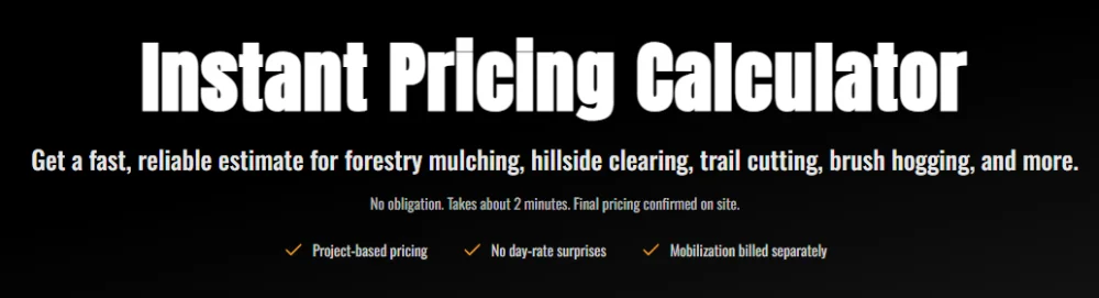 Use our quick calculator to get a ballpark cost for your clearing or mulching project.